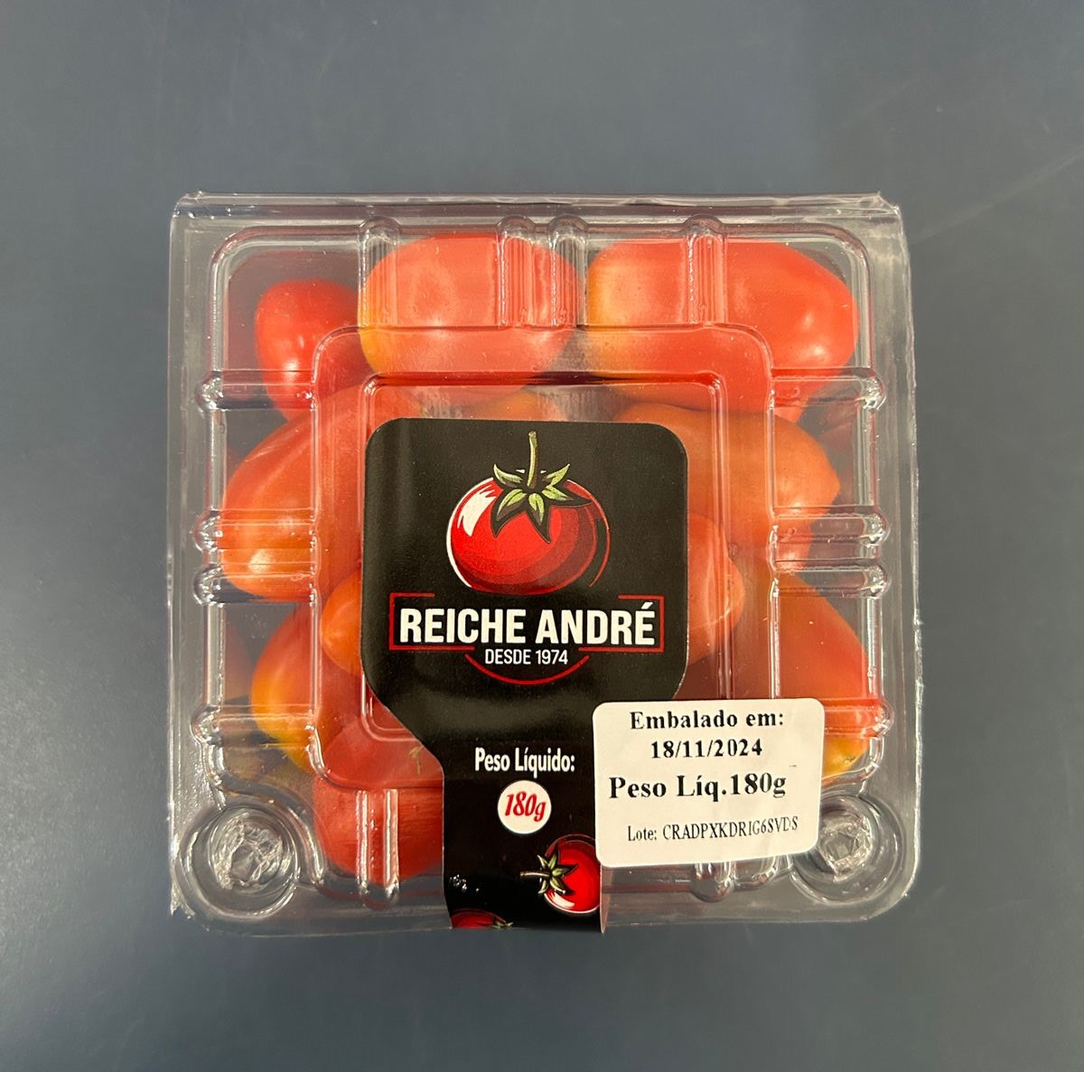 Bandeja plástica contendo 180 gramas de tomate sweet grape vermelho.