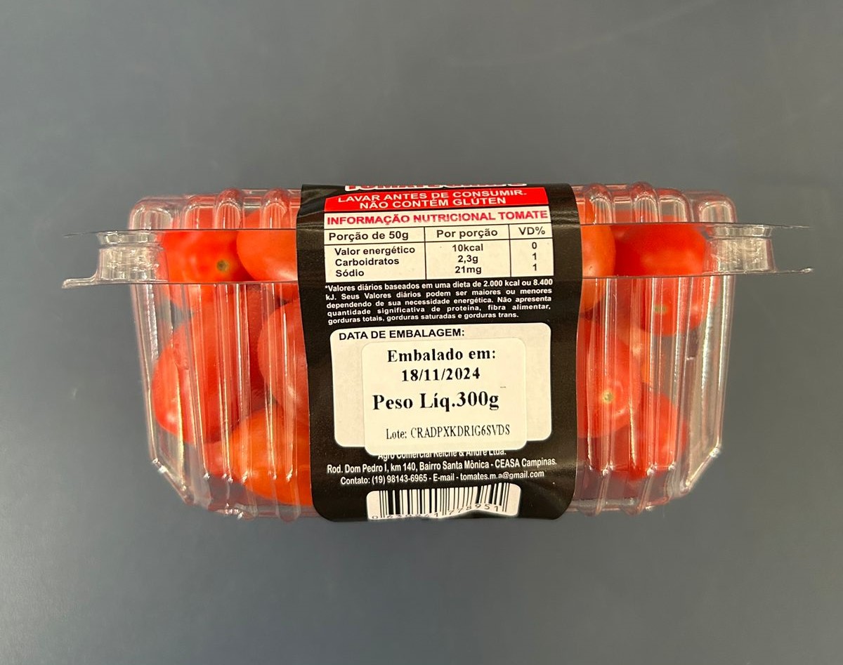 Bandeja plástica contendo 300 gramas de tomate sweet grape vermelho.